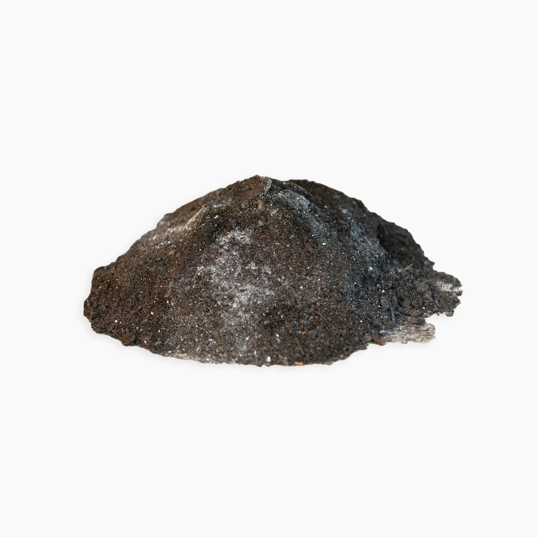 Cotton burr, a waste product of the cotton ginning process, is composed of seeds, leaves, stems and hulls from the cotton plant. The acidified compost has sulfur added to the cotton burr to lower the pH of soil.